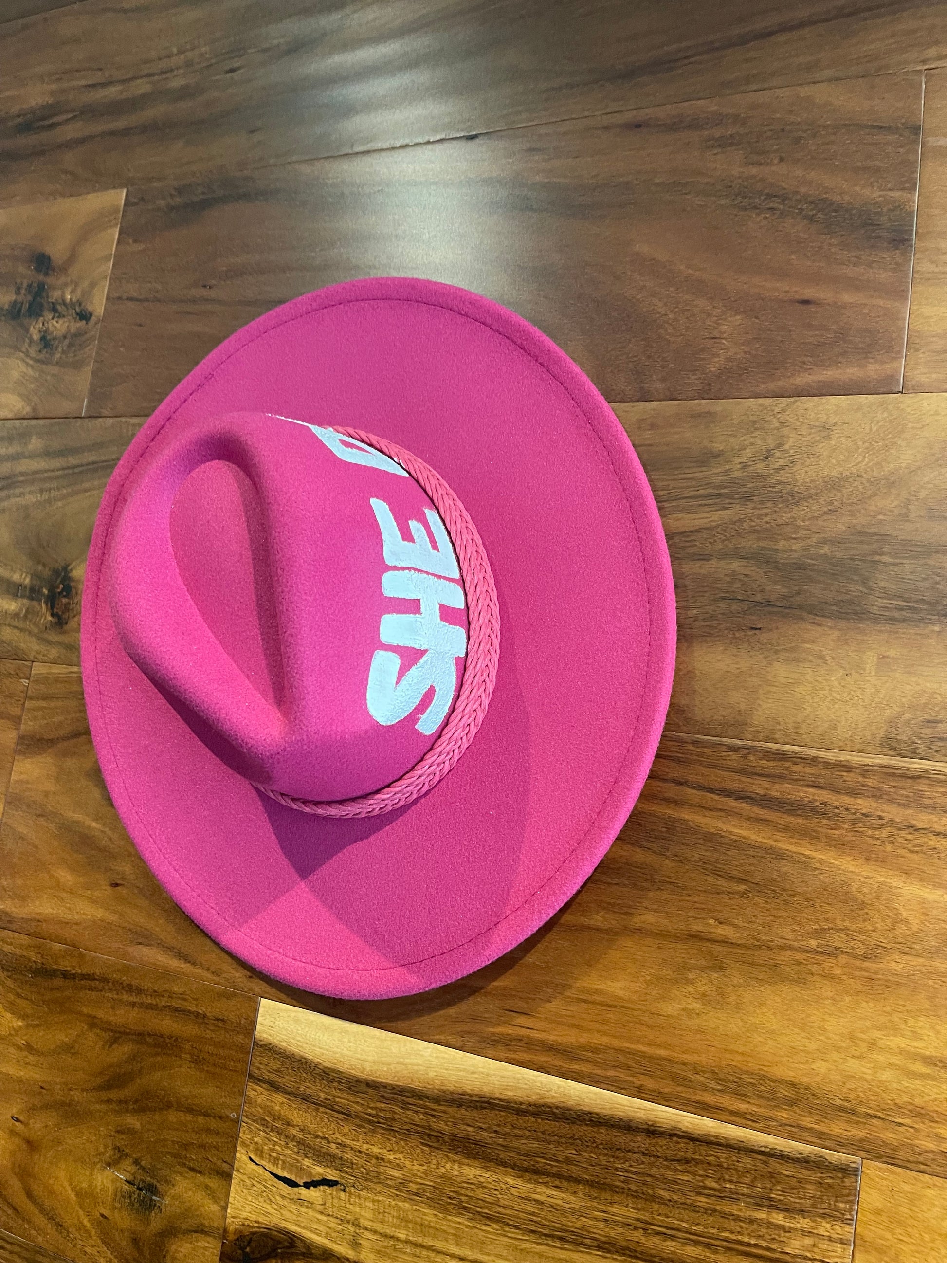 Pretty Girls this is a must have in your closet. Shop this Hot Pink hand-painted fedora.