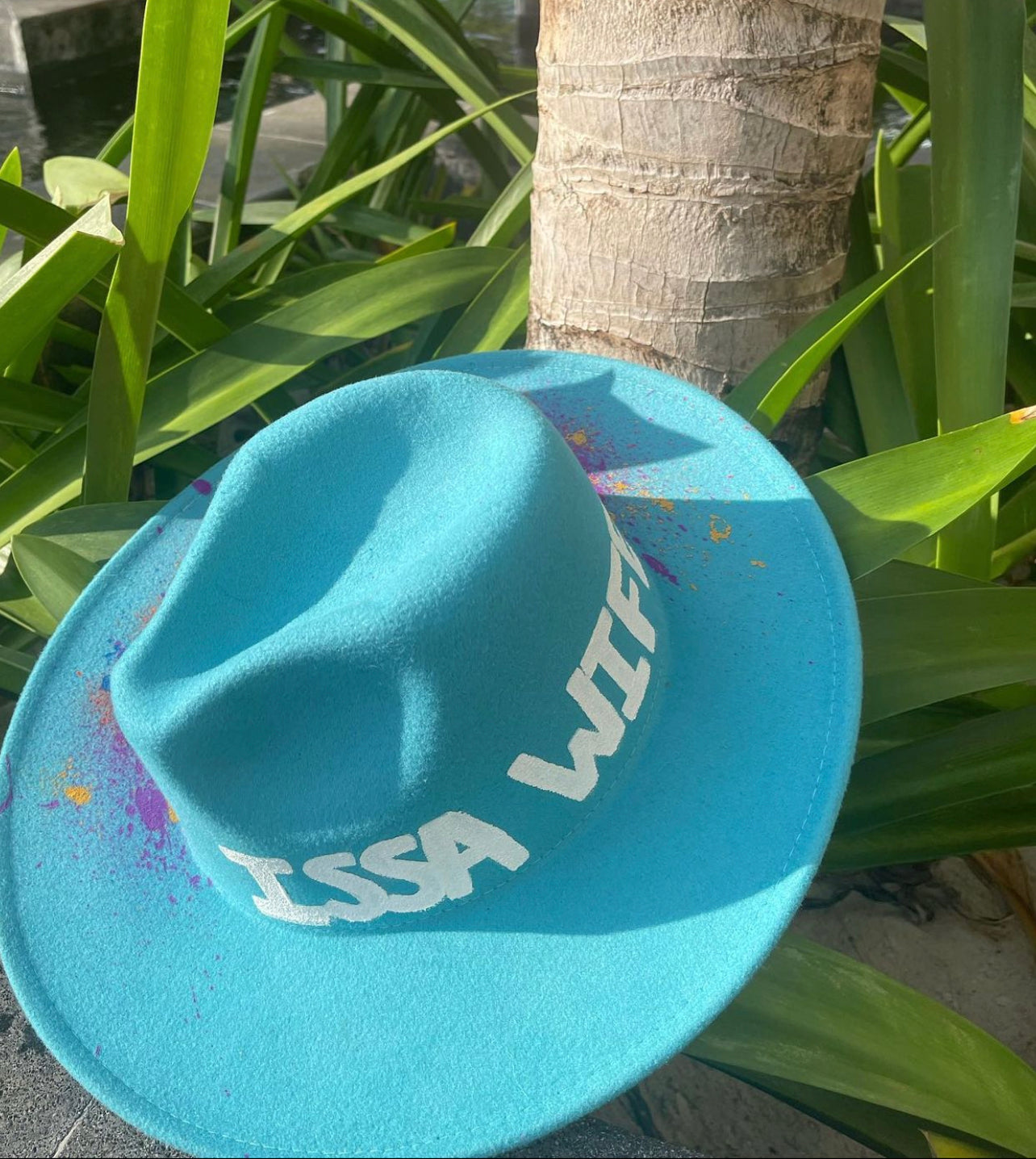 When a man finds a wife….Shop our Issa Wife Fedora. This fedora is pre painted and no changes can be made. It’s definitely that pop of detail your outfit need for baecation or any occasion. Our Fedora’s are one size fits most measuring 57-59 centimeter circumference with adjustable string in the inside. Brim width is 3 inches. Made of quality Felt Fabric. No Returns or exchanges. Hand clean only.