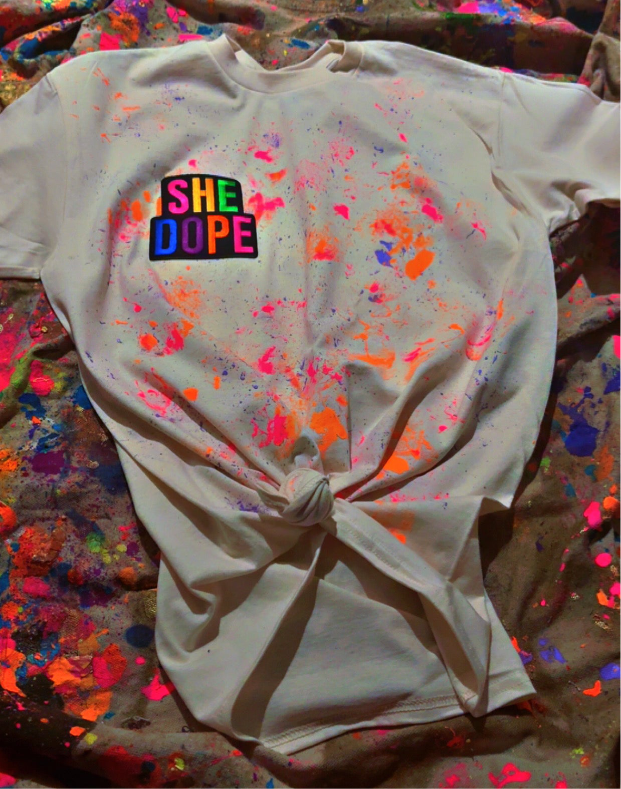 This standard tee is made of 100% cotton. Runs unisex. It may run bigger than standard women's tee. Machine wash on cold only.