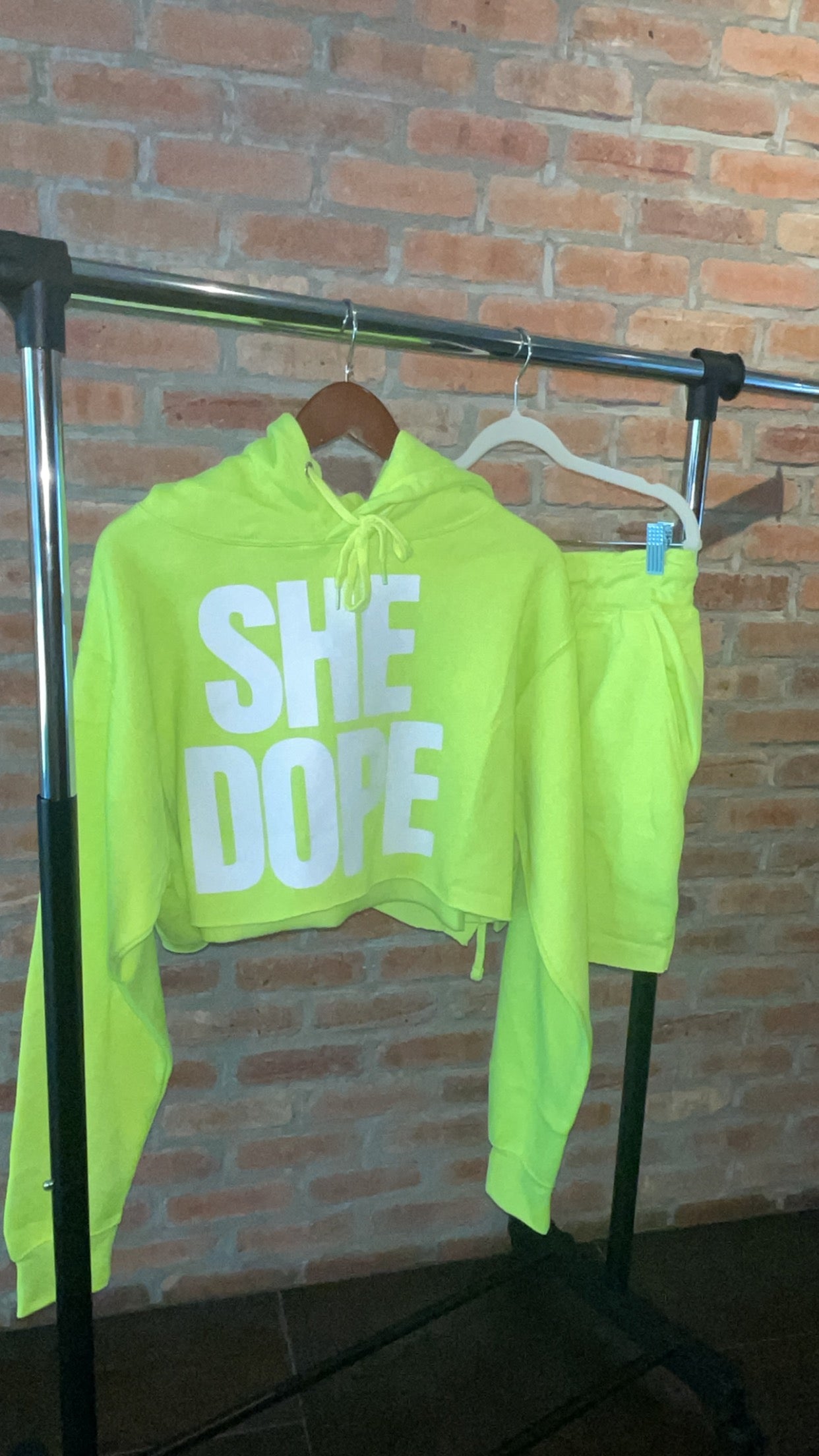 Who doesn’t love a super cute jogger short set. Especially a She Dope set. Shop our blocked letter cropped hoodie with high waisted shorts set in Neon Green. The set has a super-soft feel and performance of the cotton/poly fleece and plush fabric is definitely something you’ll want to add to your summer collection.
