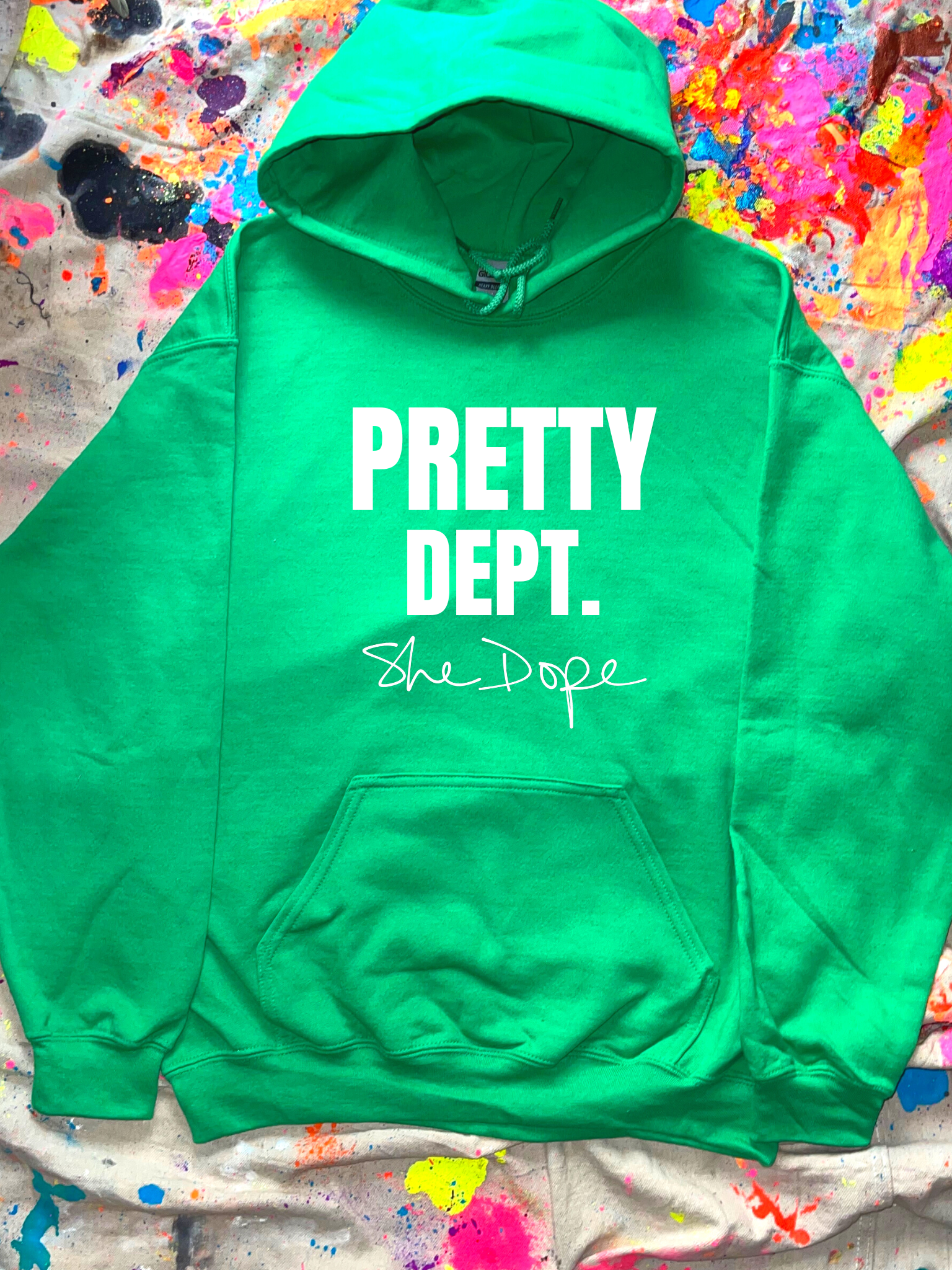 We outside Happy, at peace and real pretty sis!!! Its always cute hoodie season! SHE DOPE PRETTY DEPT. This is a standard fit hoodie made of 100% cotton.