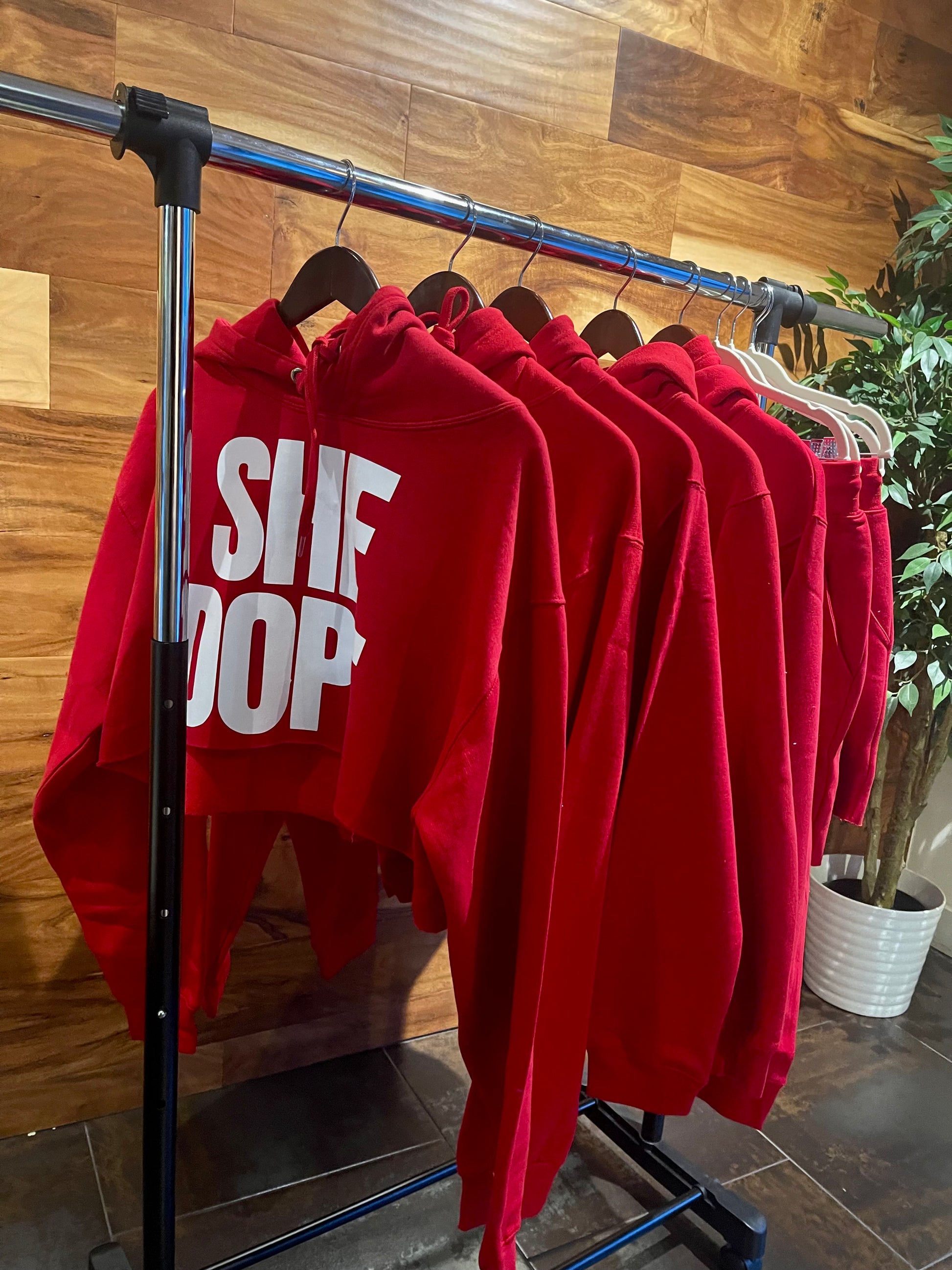 Who doesn’t love a super cute jogger short set. Especially a She Dope set. Shop our blocked letter cropped hoodie with high waisted shorts set in Red. The set has a super-soft feel and performance of the cotton/poly fleece and plush fabric is definitely something you’ll want to add to your summer collection.